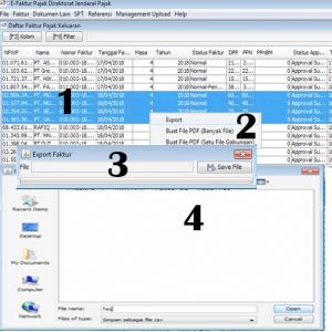 Karena di e-faktur punya format sendiri, saya ambil dulu punya faktur pajak yang sudah jadi dengan cara Export, saat ini saya coba untuk 4 faktur pajak.