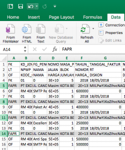 Yang sering saya gunakan dalam e-faktur adalah untuk pajak keluaran, yang saya harus gunakan adalah export data yang telah kita input dalam bentuk excel ke aplikasi e-faktur. Namun tidak semudah yang saya bayangkan setelah saya ketik dalam tabel excel saya input dan alhasil data error. untuk saat ini yang saya lakukan sebagai berikut.