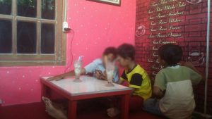 Mungkin anak-anak tersebut menikmati tempatnya atau mungkin fasilitas hotspot, tapi untuk minuman susunya sepertinya mereka tidak menikmati, karena biar gelasnya sudah kosong mereka tetap santai dengan handphone di tangannya, untuk zaman saat ini handphone sudah menjadi barang biasa, sedangkan dulu saat saya SD bahkan SMP pegang HP jangankan yang bisa game bisa dimainkan berbarengan pegang HP yang tidak ada cameranya saja sudah terlihat keren.