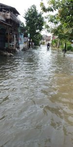 Menyusuri jalan yang penuh air +-500 meter, di bagian sisi jalan terdapat anak-anak penuh kebahagiaan dan suka cita bermain air bahasa kerennya “ngebak”